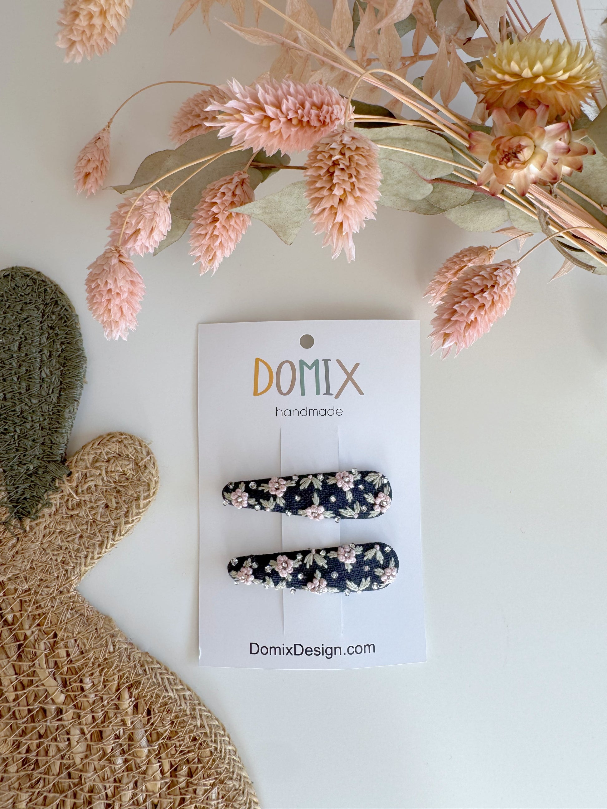 Handmade Linen Embroidered Hair Clips – Set of 2