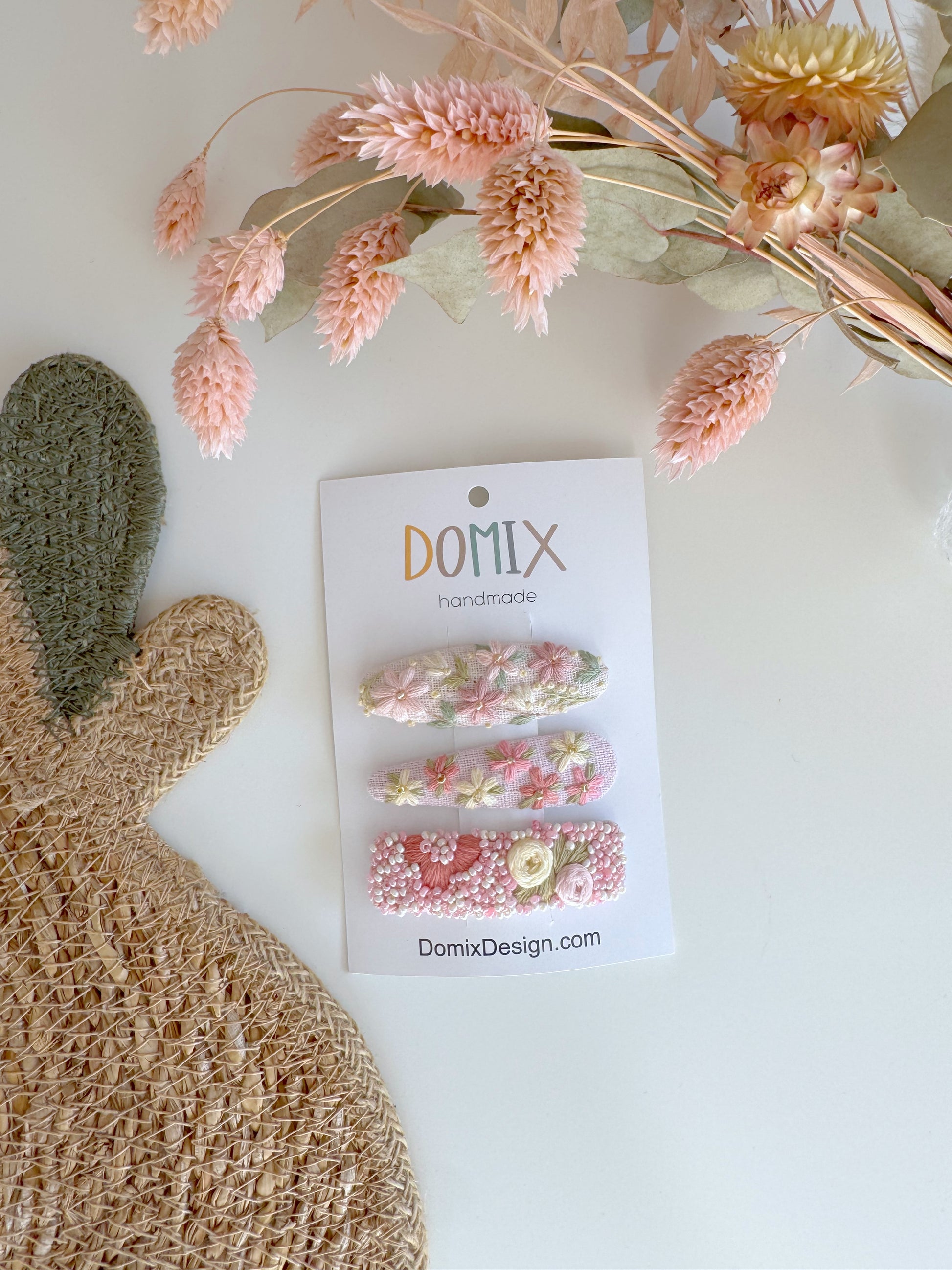 Limited Edition Embroidered Linen Hair Clips – Luxury Set of 3